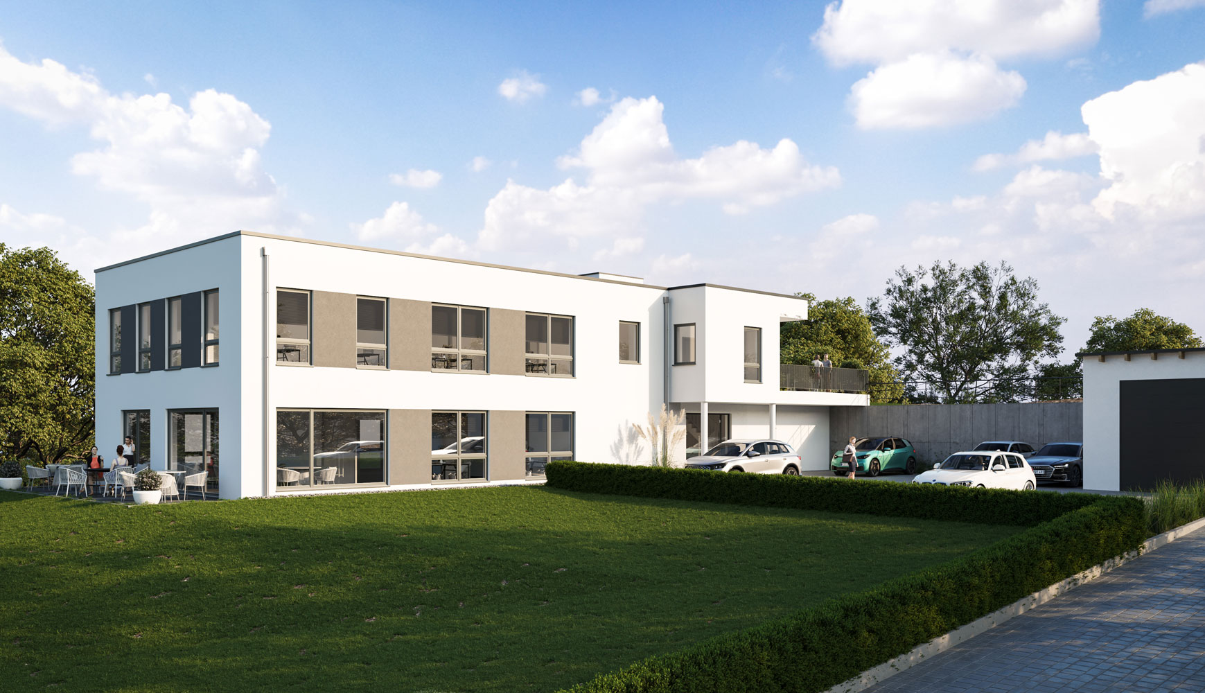 Schlüsselfertiger Neubau eines zweigeschossigen Bürogebäudes in Kaisersesch.
